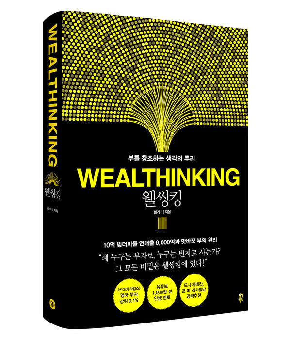 켈리 최 저자는 12개국에 진출해 있고 코로나 악재 속에서도 130%의 성장률을 기록하는 저력을 발휘한 글로벌 기업 켈리델리의 회장님이자 창업자입니다. 또한 10억의 빚을 연매출 6천억으로 만든 부의 원리를 깨우치신 분입니다. 어렸을 땐 가난한 시골 환경에서 어려운 시절을 보냈는데, 먹고 살아야 한다는 생각에 16살에 상경하여 봉제공장에서 일하고 밤에 공부하면서 꿈을 키웠습니다. 더 많은 것을 배우기 위해 일본으로 프랑스로 유학을 하면서 악착같이 공부했다고 합니다. 30대에 잠시 성공을 한 듯 했으나, 이내 10억의 빚을 진 자신의 모습을 보면서 죽음도 생각하셨다고 합니다. 그러나 포기하지 않고 세 가지 인생의 결단을 합니다. 좋아하던 술을 끊고, 드라마 게임 SNS 등의 유희를 끊고, 인맥관리를 위한 모임을 끊는 것이 그것이었습니다. 그 뒤 자신처럼 어려움 속에서 부자가 되신 분들 천 명을 연구한 뒤 본인만의 원칙을 세워 실천으로 옮겼습니다. 그렇게 하여 켈리델리라는 기업을 세우고 고속성장을 이루어냈습니다. 저자가 배우고 실천했던 부자 마인드를 본인만 알고 있는 것이 아니라 세상에 알리기 위해 '웰씽킹 아카데미'를 설립해서 많은 사람들이 꿈과 목표를 이룰 수 있도록 돕고, 선한 영향력을 평생의 사명으로 삼았습니다. 최우선 가치로 공헌하는 삶을 생각하면서 많은 분들에게 희망을 전달하고 있습니다.